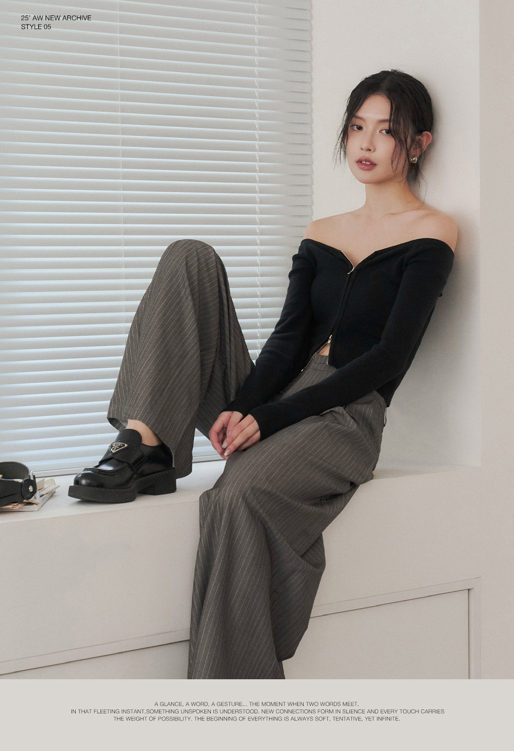 雙拉鍊一字領口袋上衣(果凍空氣棉)