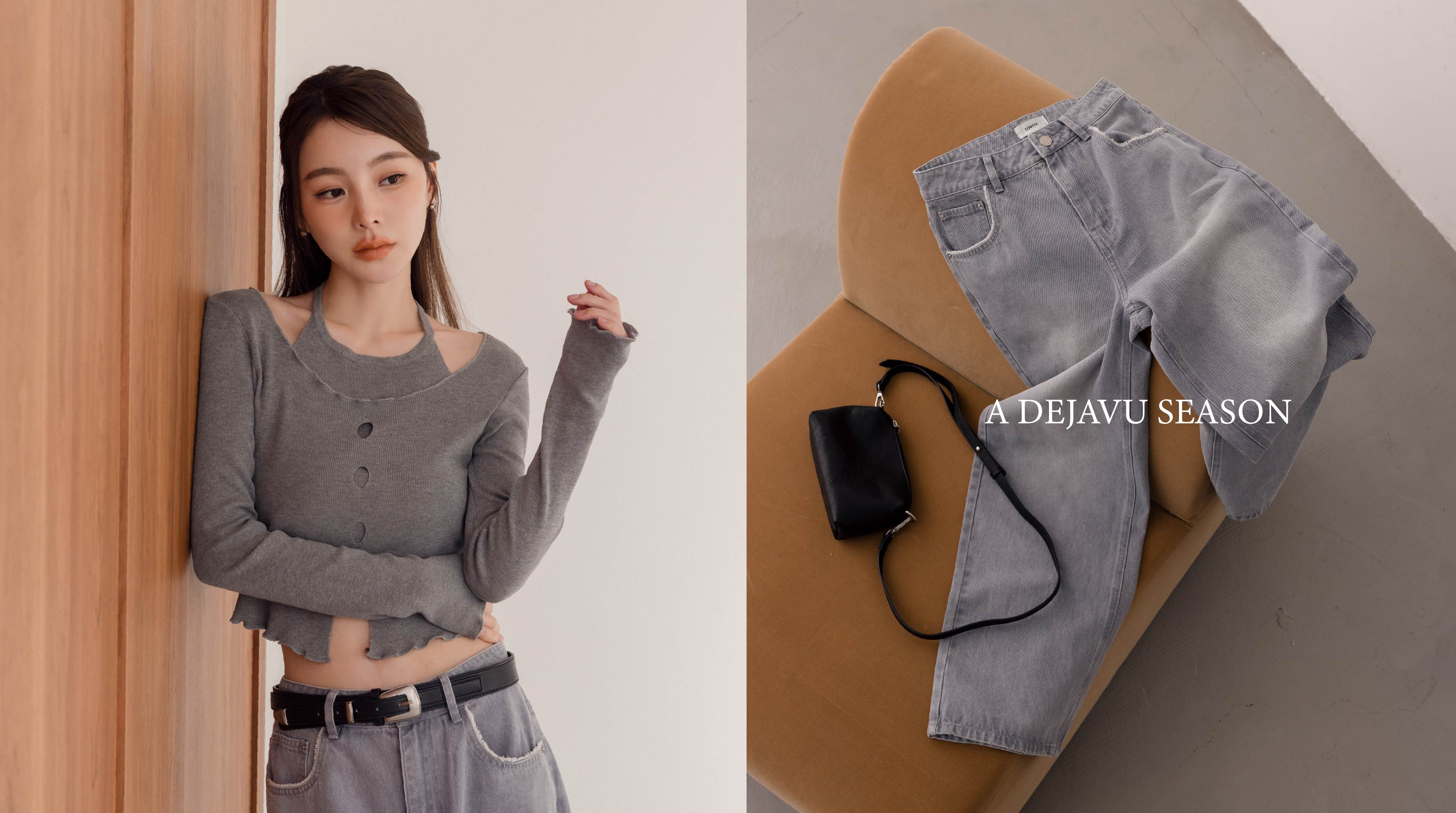 兩件式前胸抓皺造型上衣