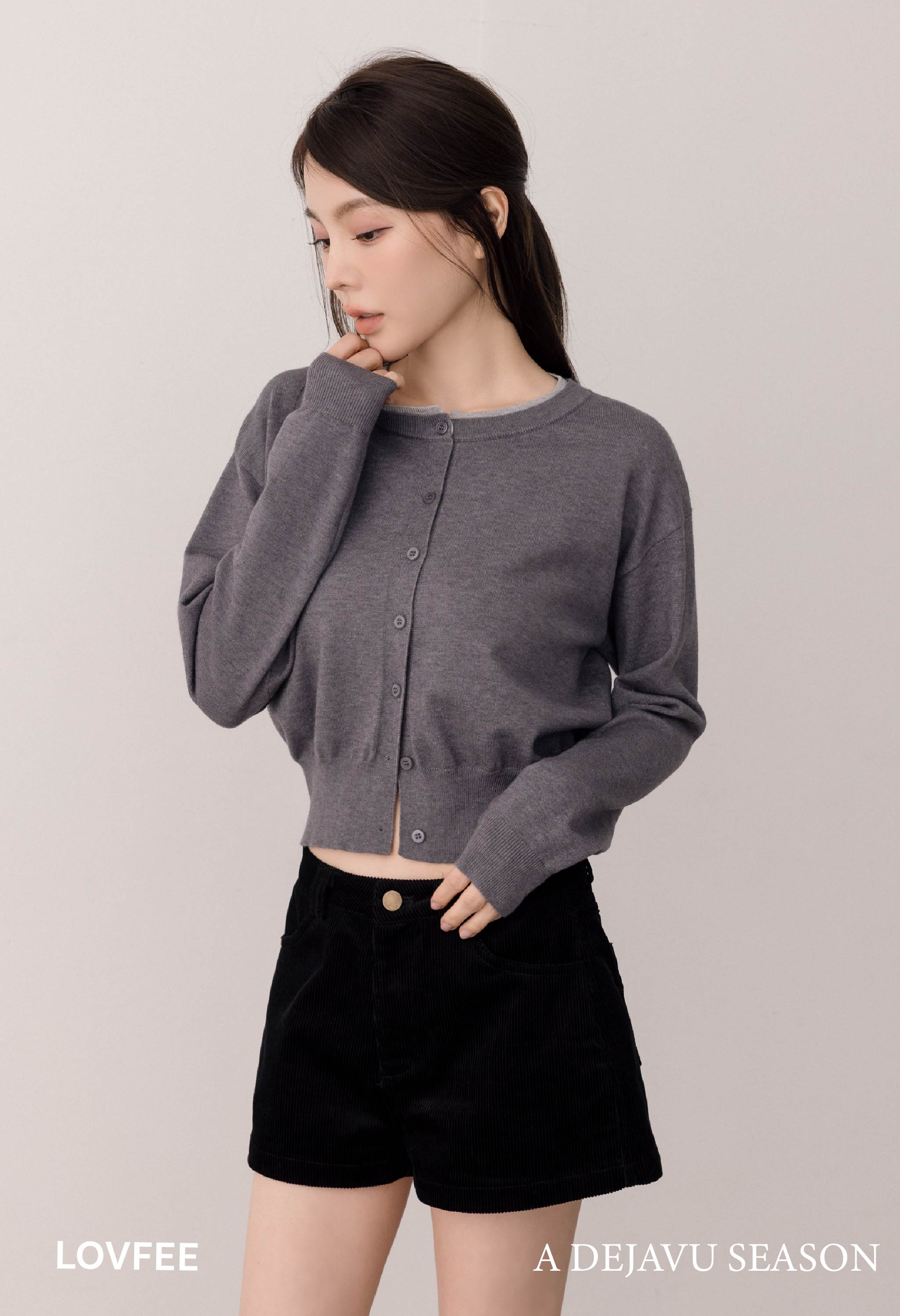 排釦圓領坑條針織小外套