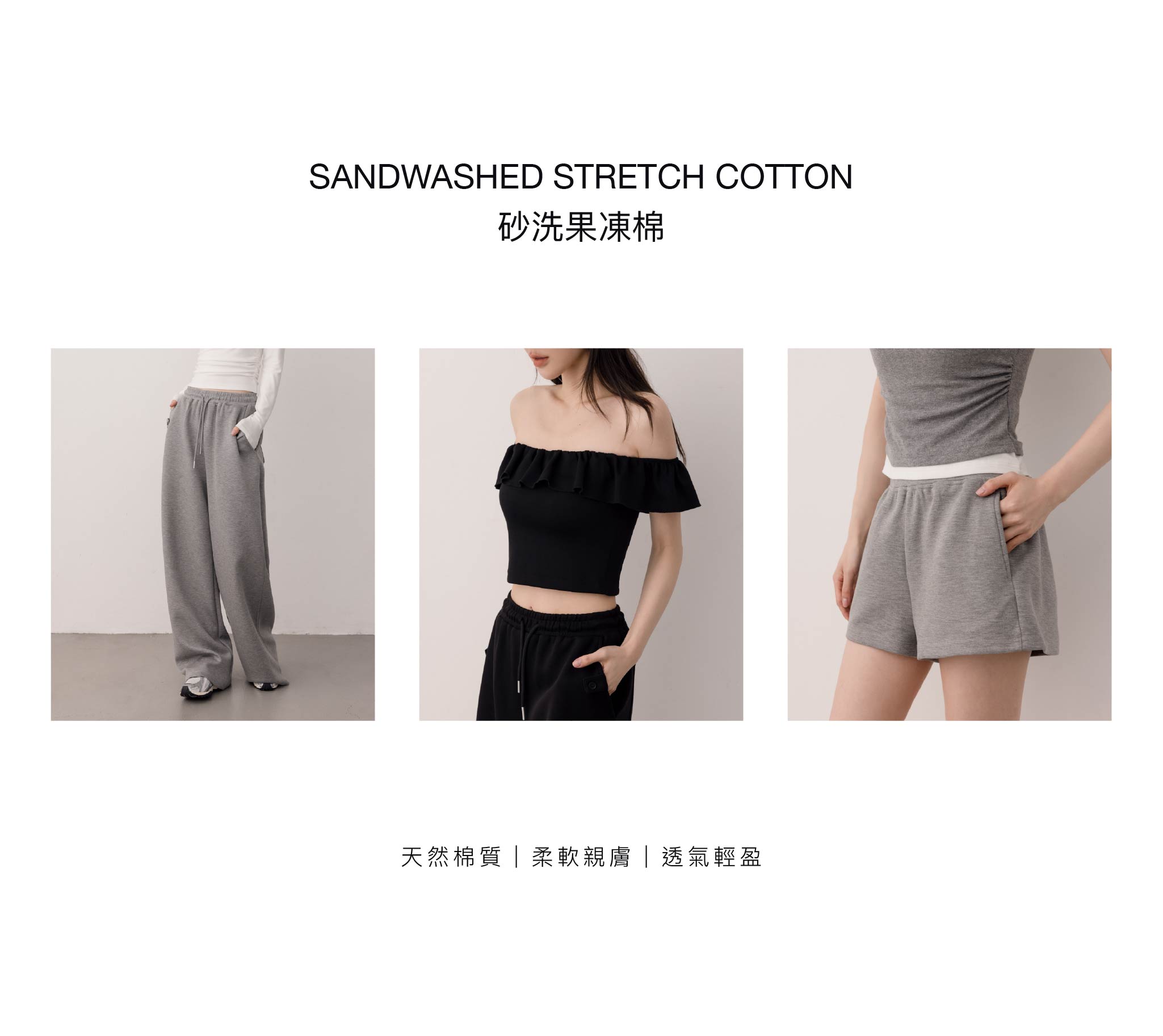 鬆緊腰頭短褲(砂洗果凍棉)